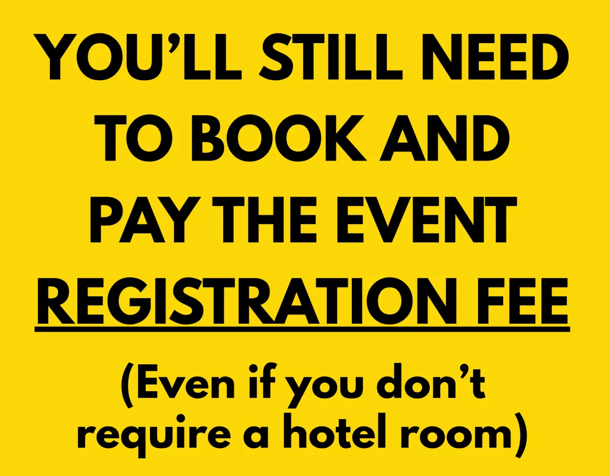 You’ll still need to book and pay the event registration fee even if you don’t require a hotel room.